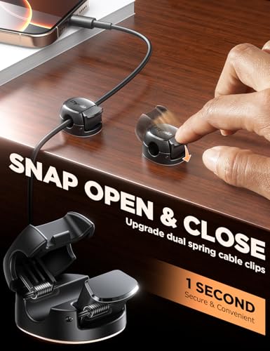 Specification: Chfeila Cable Tidy Clips, 8Pack [Dual Spring & Clasp, Max Secure] Cable Organiser, Desk Cable Management, Adhesive Phone Charging Wire Holder for Nightstand/Car/Wall, Home, Office Accessories – Black