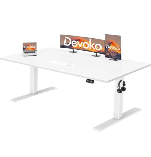 Devoko Electric Standing Desk 160x70cm, Height Adjustable Desk Ergonomic Stand up Table with 2 Memory Preset, White