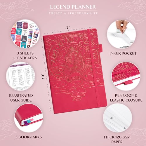 Specification: Legend Planner PRO – Undated Weekly & Monthly Life Planner for Goals & Productivity. Time Management Organizer Notebook, 18×25.5cm (Hot Pink)