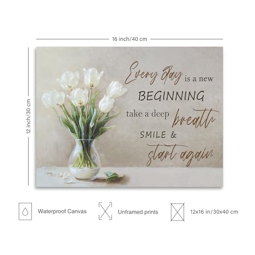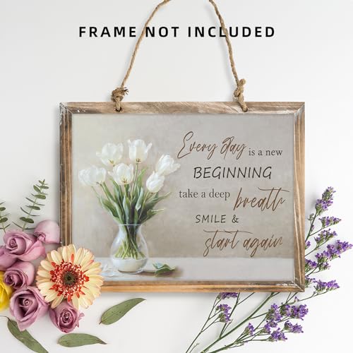 NymphFable Motivational Botanical Wall Art Poster, Flower in Vase with Everyday Is A New Beginning Quote, Country Floral Wall Art Print for Bathroom Bedroom Kitchen Decor 12×16 in Unframed