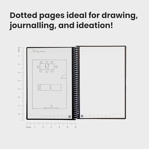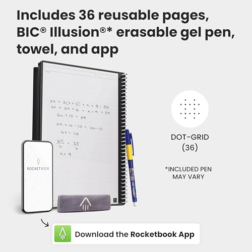 Versatile Dot Grid Pages: The Rocketbook Core Dotted notebook features dot grid pages that can be used again and again. Simply brainstorm ideas, create diagrams, draw up engineering designs, and sketch artistic visuals, then erase and start fresh.
